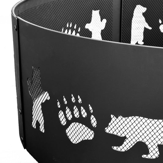 36" Bear Pattern Steel Fire Ring, Heavy Duty and Portable