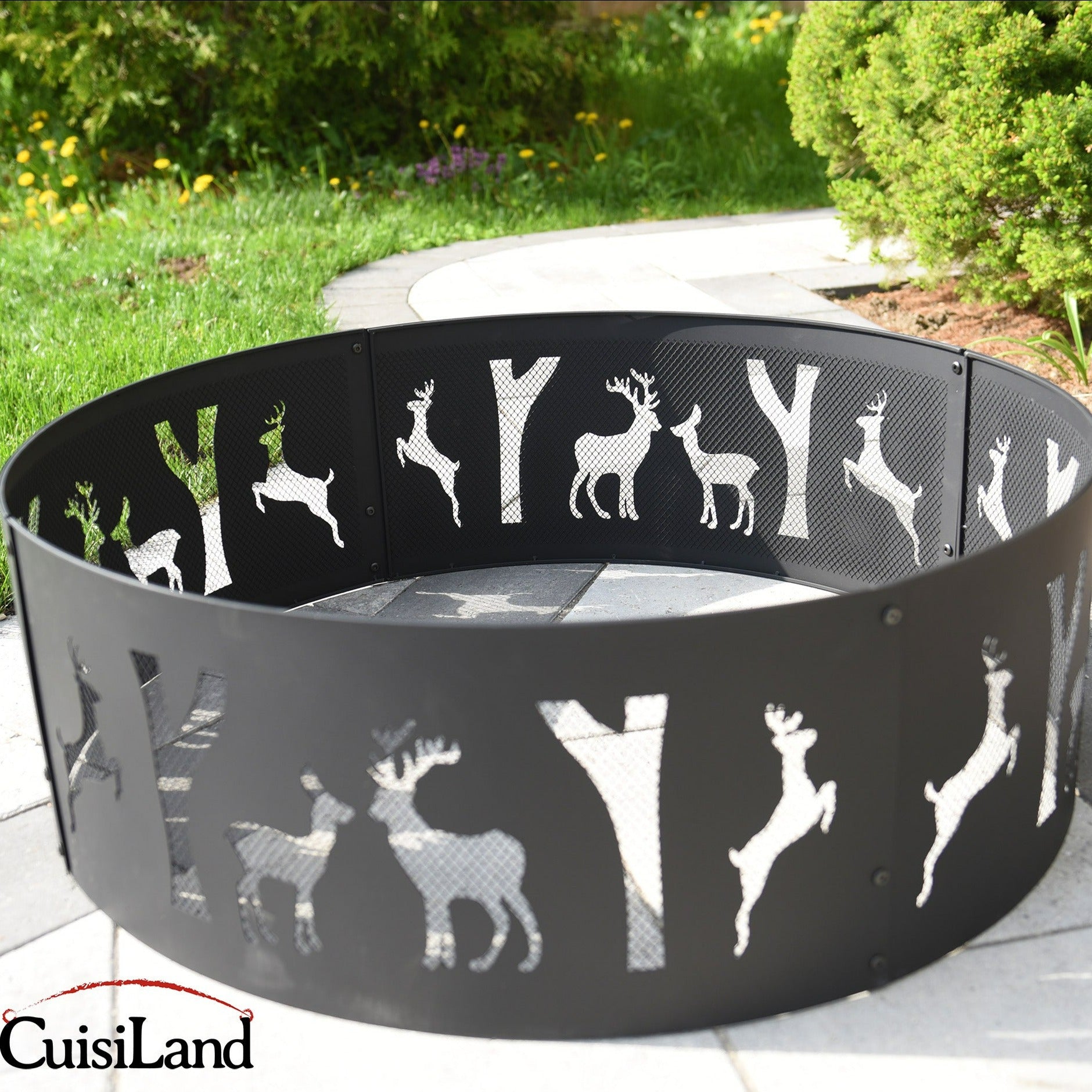 36" Deer Pattern Steel Fire Ring, Heavy Duty and Portable