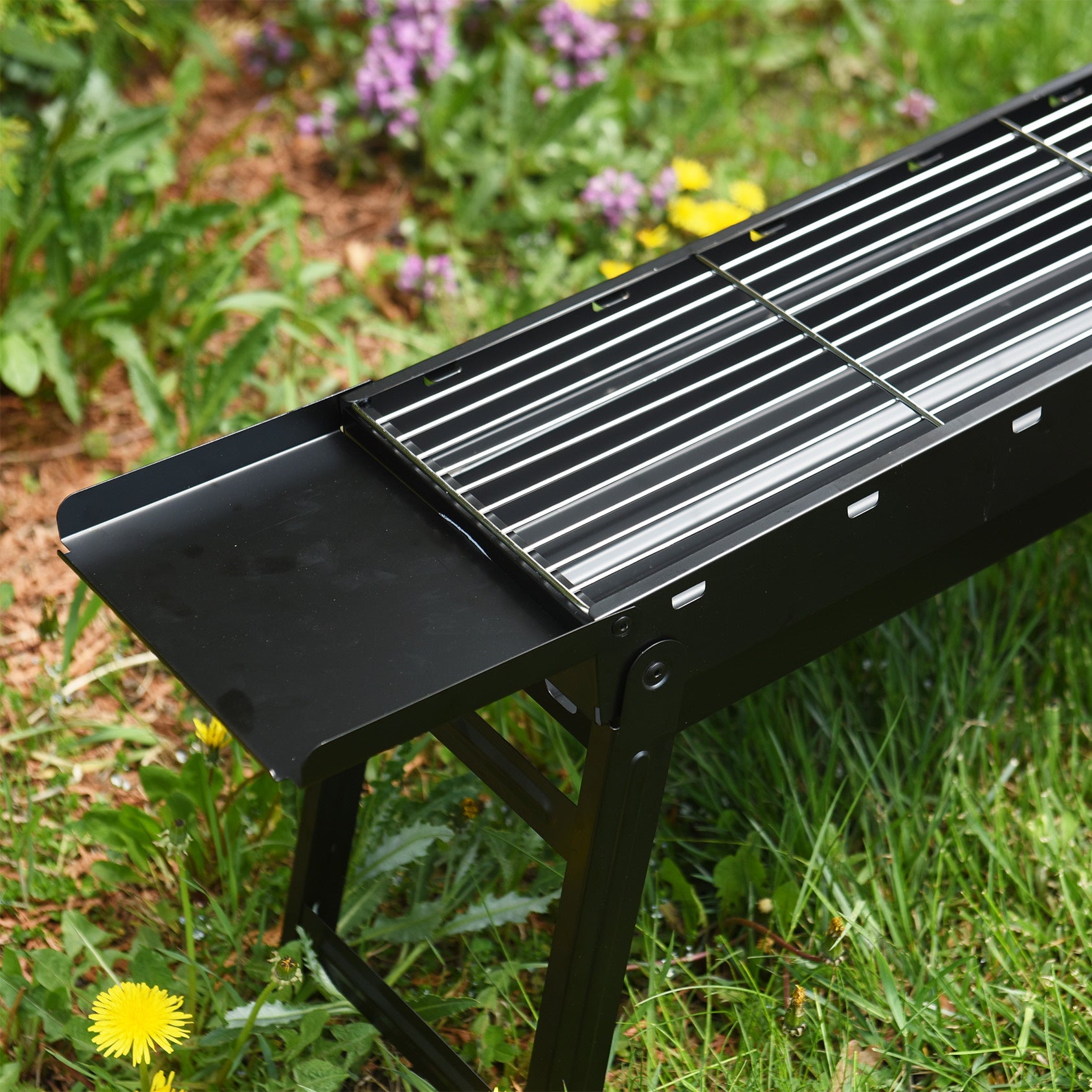 - PORTABLE AND COMPACT: The grill can be easily folded and packed in a compact box, measuring only 25 x 8.5 x 3 inches. When opened, the BBQ grill provides a spacious grilling area with dimensions of 34 x 8 x 15 inches. It offers portability and easy storage, making it ideal for outdoor adventures and gatherings.