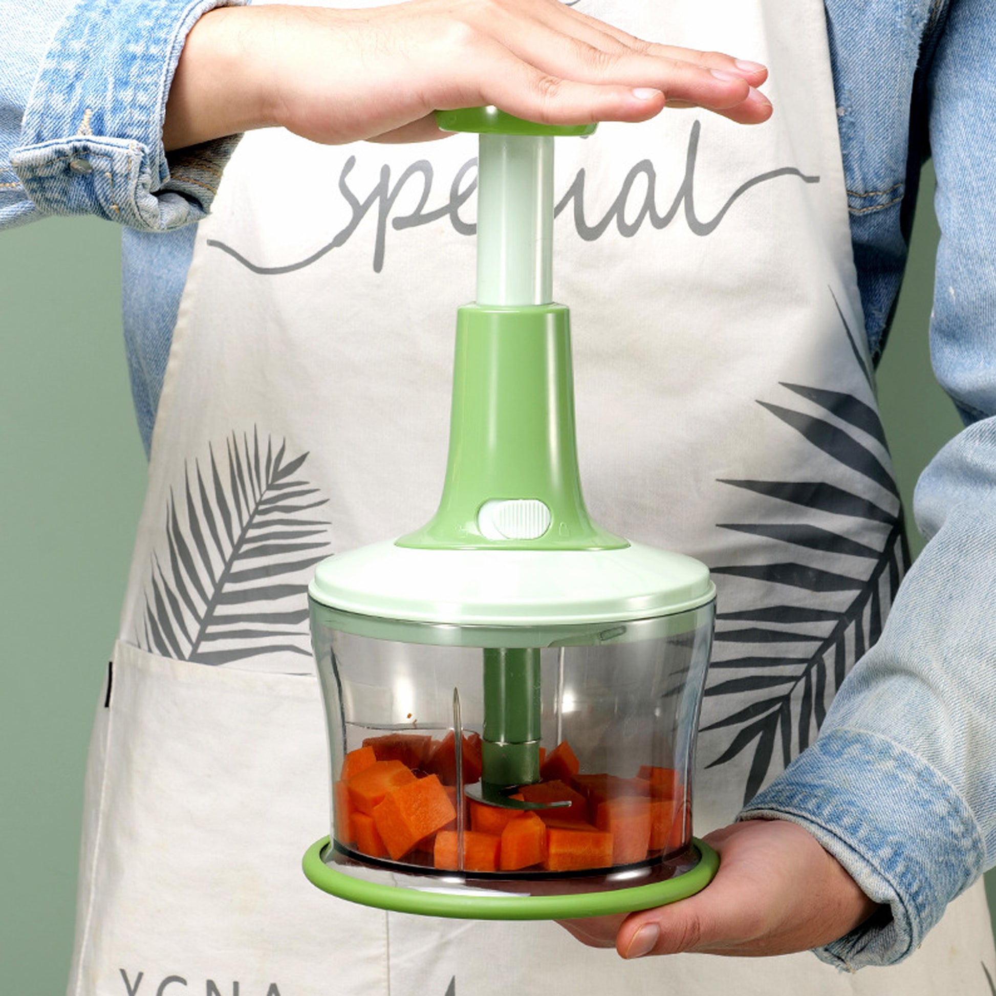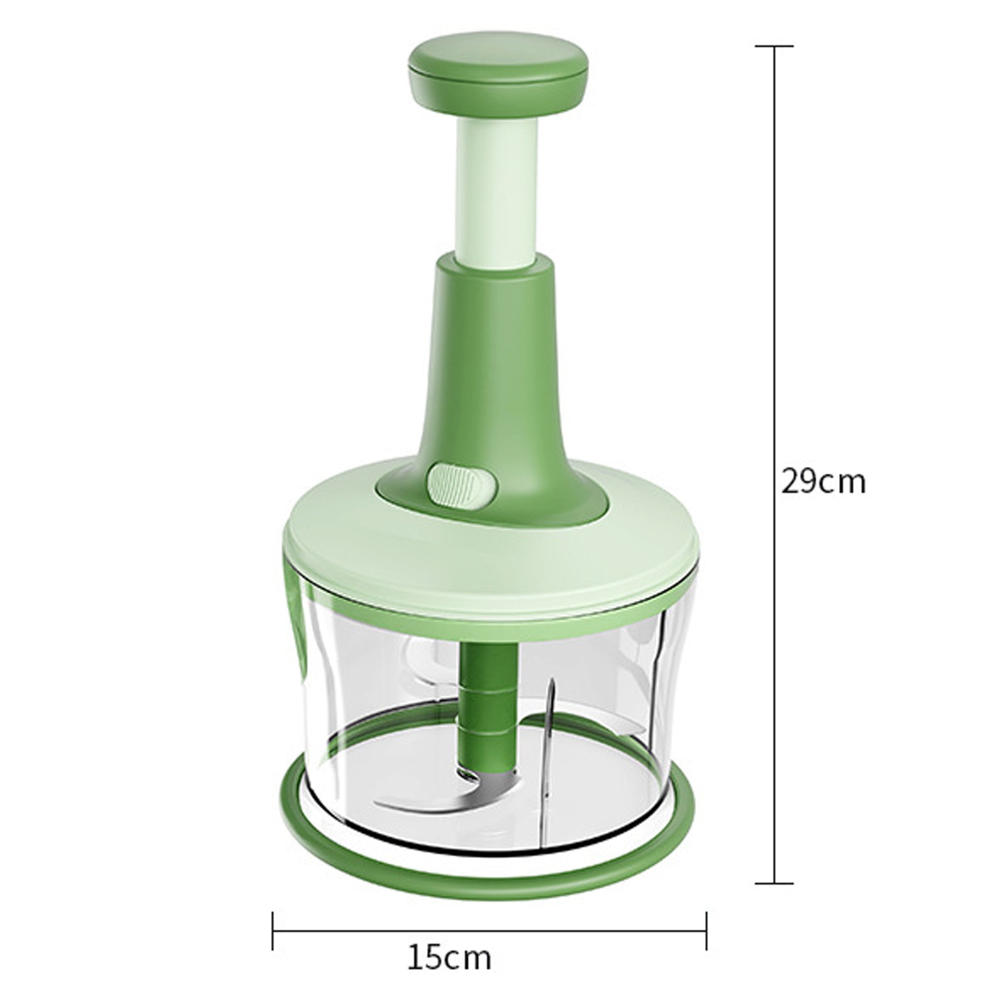 - Effortless Push-Down Operation – Features an ergonomic press handle design. Simply press down to rotate the sharp stainless-steel blades for efficient chopping, slicing, and mixing without electricity.