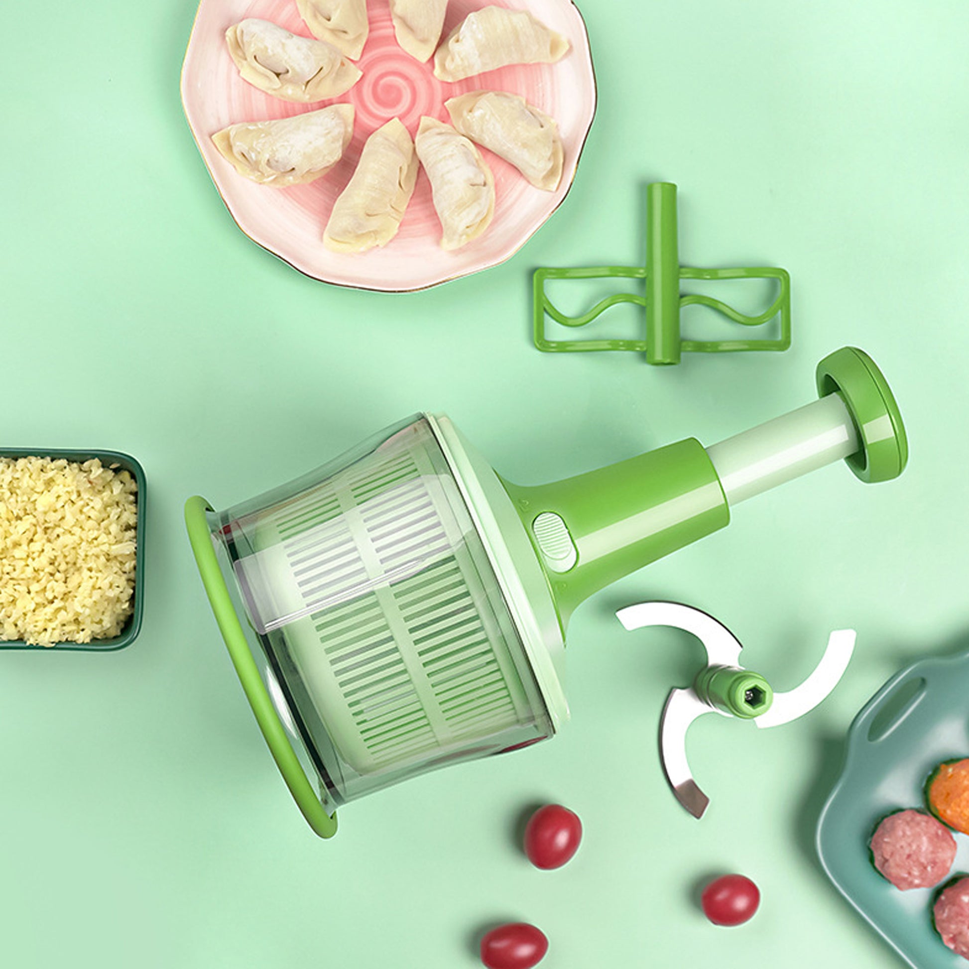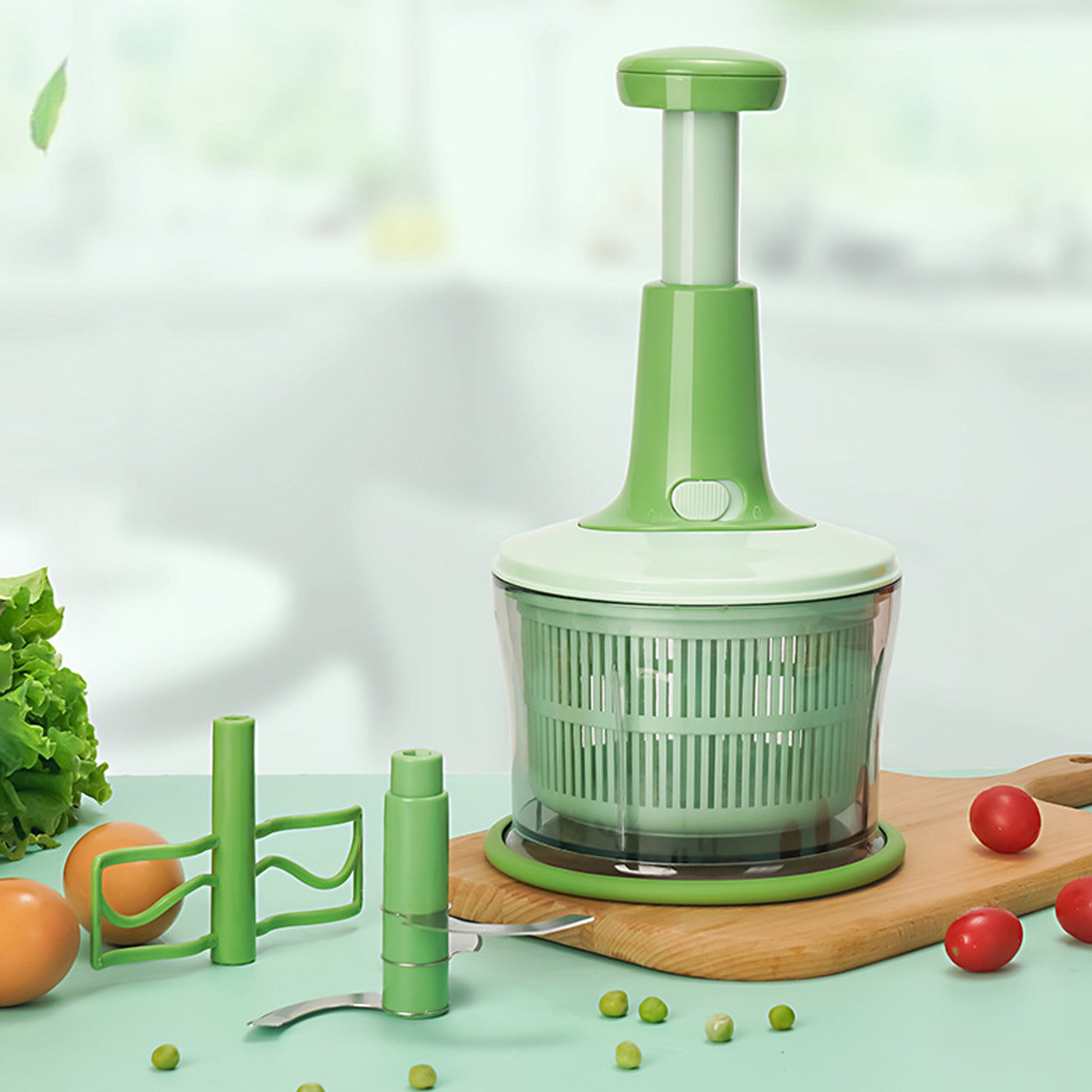 Make meal preparation faster and easier with this 1.1L Press Chopper, the perfect kitchen assistant for chopping, mixing, and rinsing. With its press-down push handle, you can quickly chop onions, garlic, peppers, fruits, or nuts without the hassle of knives and cutting boards. The 1.1-liter large capacity makes it suitable for family-sized dishes, while the included multi-function accessories (stainless-steel blades, mixing paddle, and draining basket) expand its versatility – from chopping meat to spinning salad leaves.