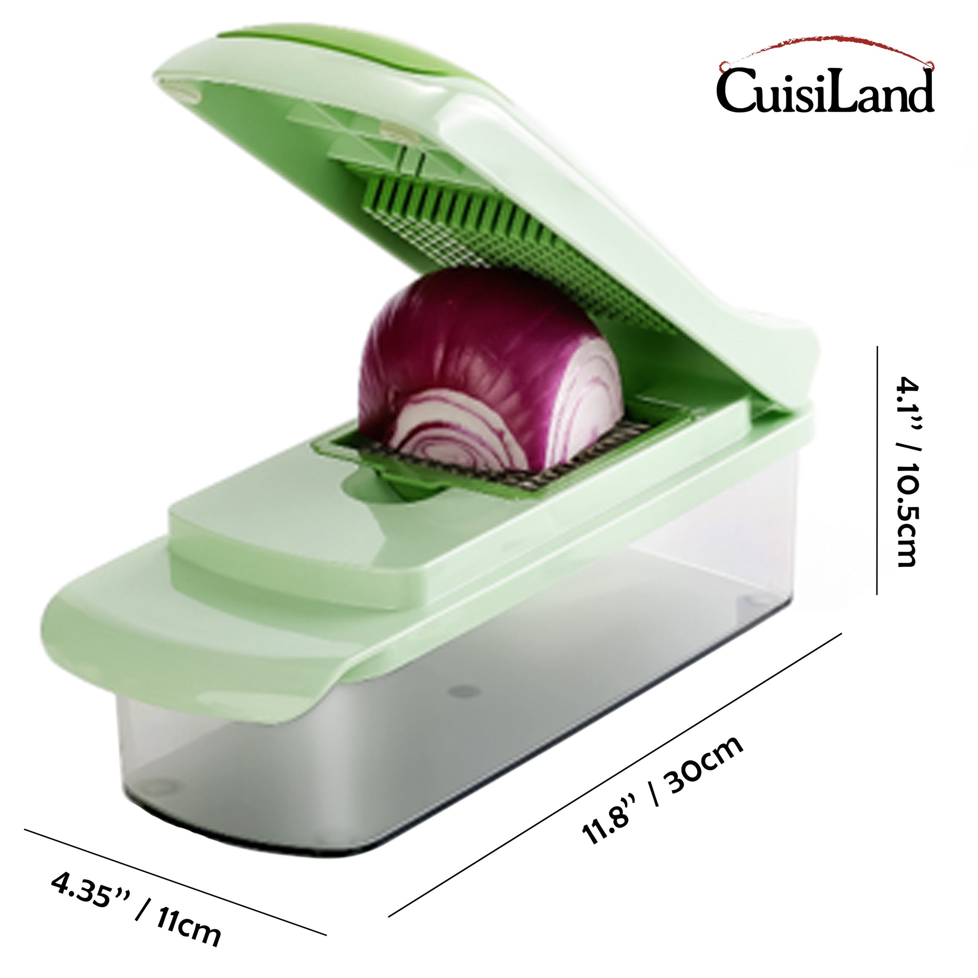 Make meal prep faster and easier with the Cuisiland 1.3L 6-in-1 Multi Chopper. This versatile kitchen gadget combines a vegetable slicer, onion chopper, mandoline slicer, and grater into one compact design. With interchangeable stainless-steel blades, you can slice cucumbers, dice onions, shred potatoes, or grate cheese with ease.