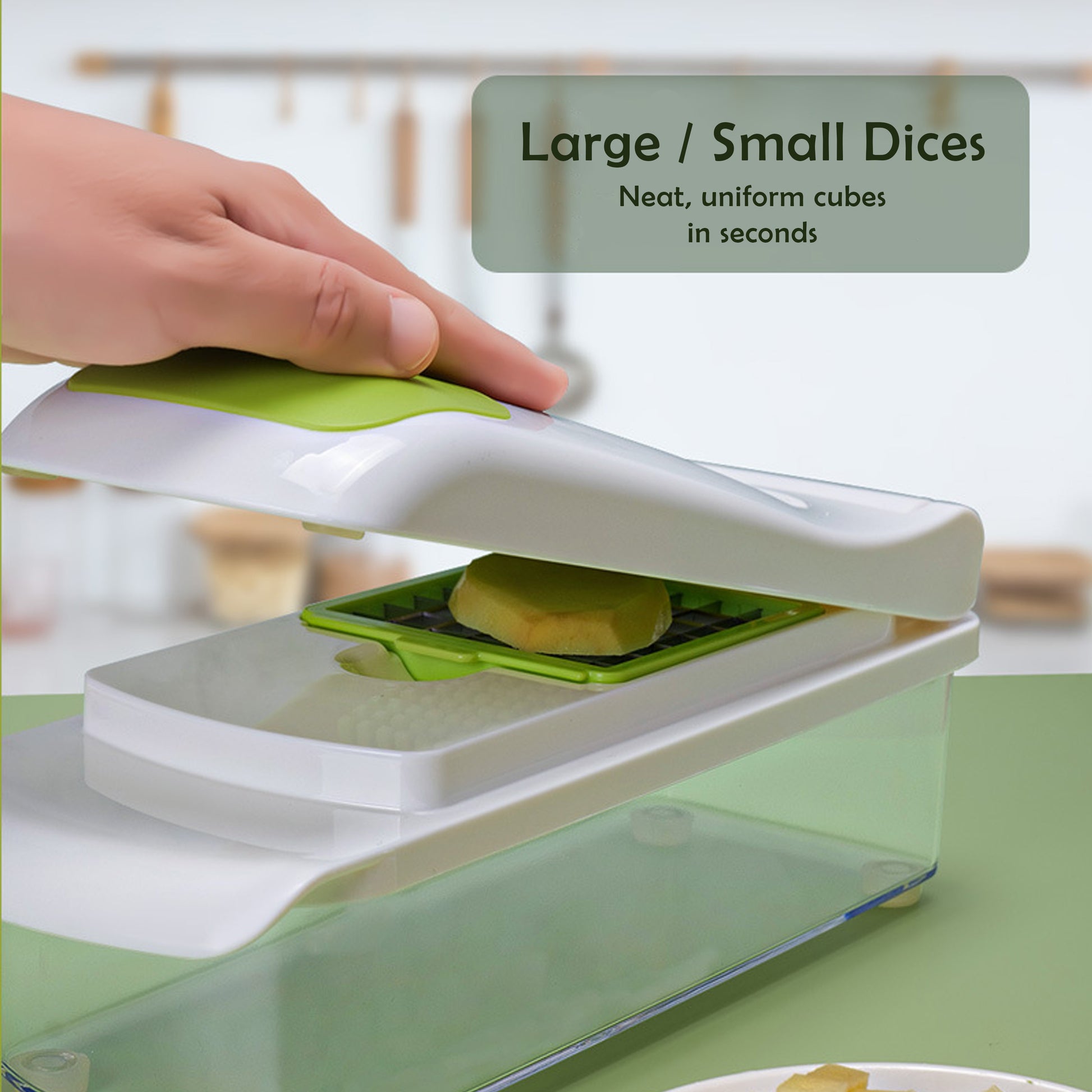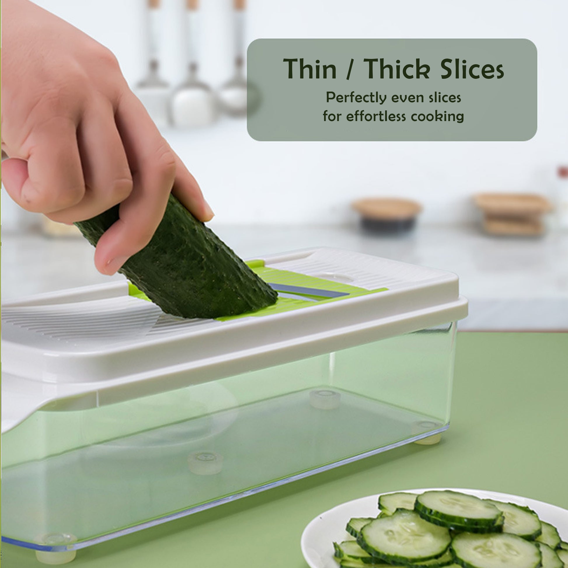 The large 1.3L container keeps your countertop clean while collecting freshly cut ingredients. Whether you’re preparing stir-fry, salads, or snacks, this tool helps you achieve consistent results in seconds.