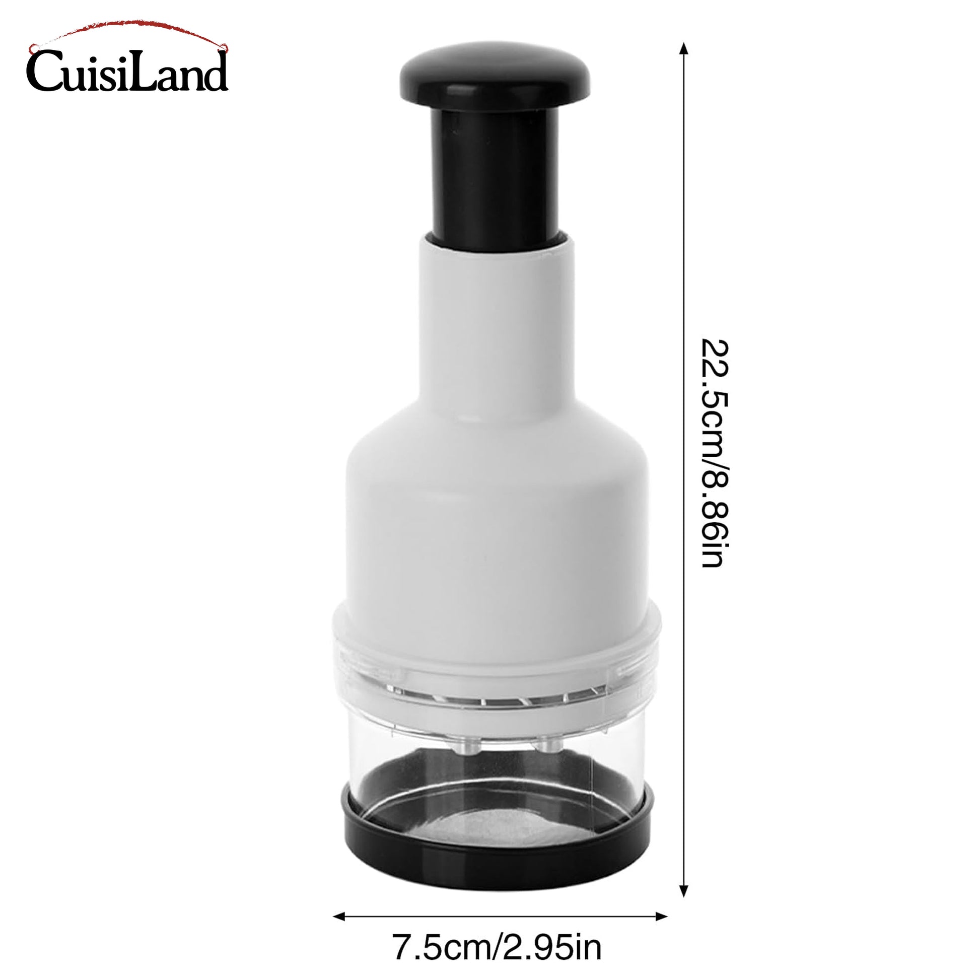 Make meal prep easier with this manual garlic press chopper. Designed with a simple press-down mechanism, it chops garlic, onion, ginger, chili, nuts, and vegetables in seconds—without electricity. Measuring 22.5cm/8.86in tall and 7.5cm/2.95in wide, this compact chopper is lightweight and easy to store in any kitchen drawer or cabinet.