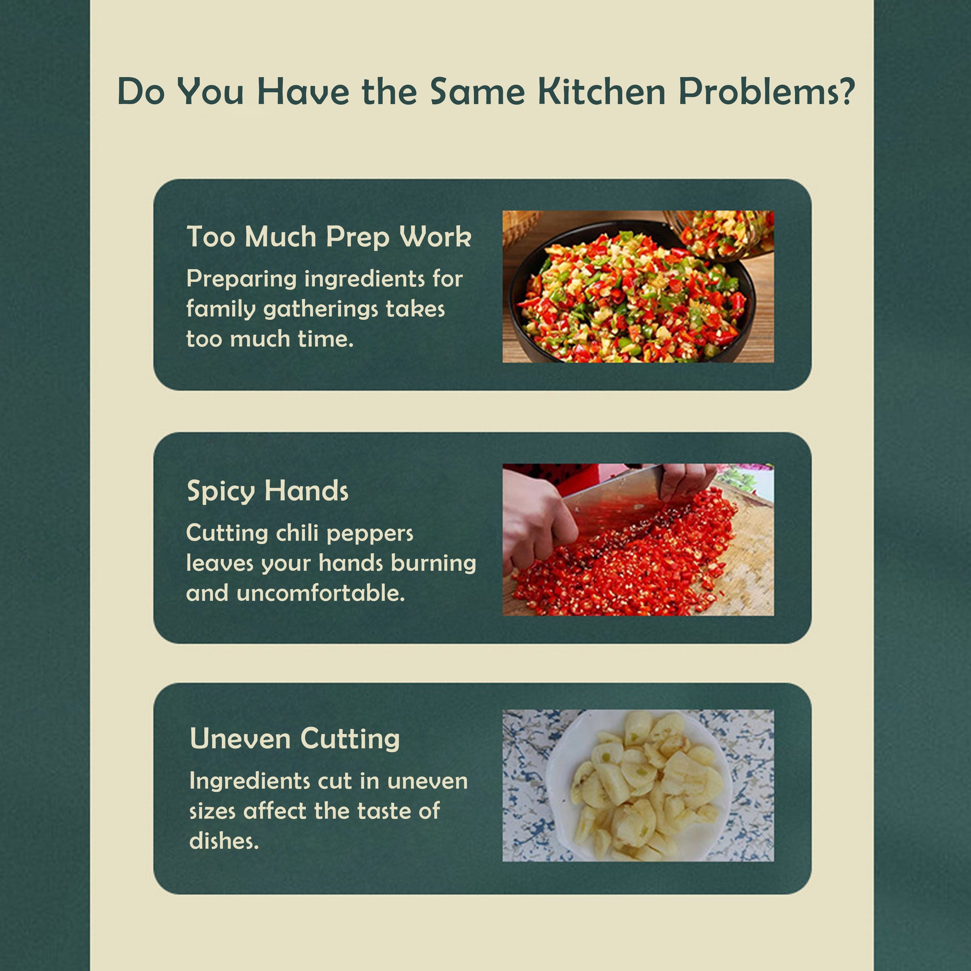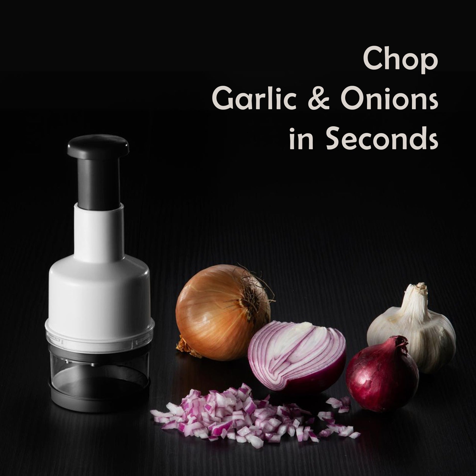 - Effortless Press Design – Just press down to chop garlic, onions, herbs, or vegetables quickly and evenly. No twisting or electricity needed.