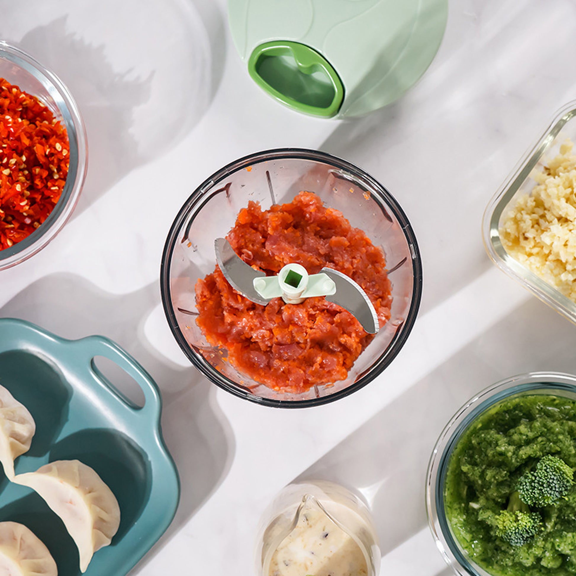 The 900ML Manual Pull Chopper is your versatile kitchen companion for chopping, mixing, and preparing meals faster. With its double-layer stainless steel blades, it easily handles vegetables, garlic, onion, chili, herbs, and even soft meat, delivering consistent results in seconds.