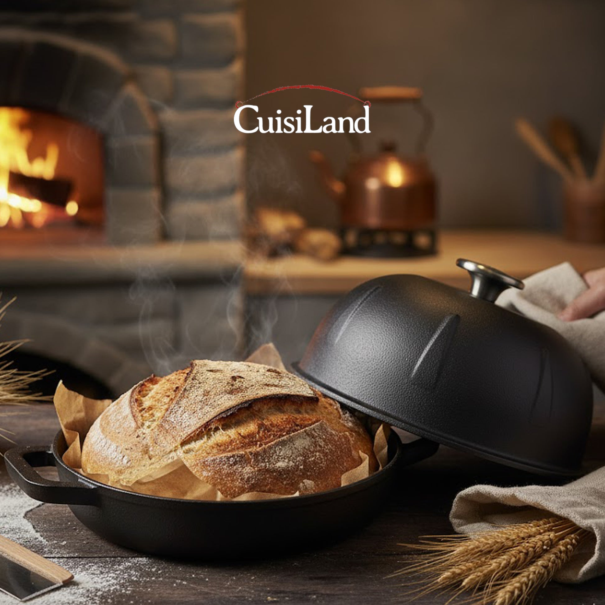 Cuisiland Pre-Seasoned Cast Iron Bread Cloche – Dome Lid Dutch Oven for Artisan Sourdough Baking – Heat-Retaining, Nonstick Bakeware for Crispy Crust & Even Baking – Oven Safe