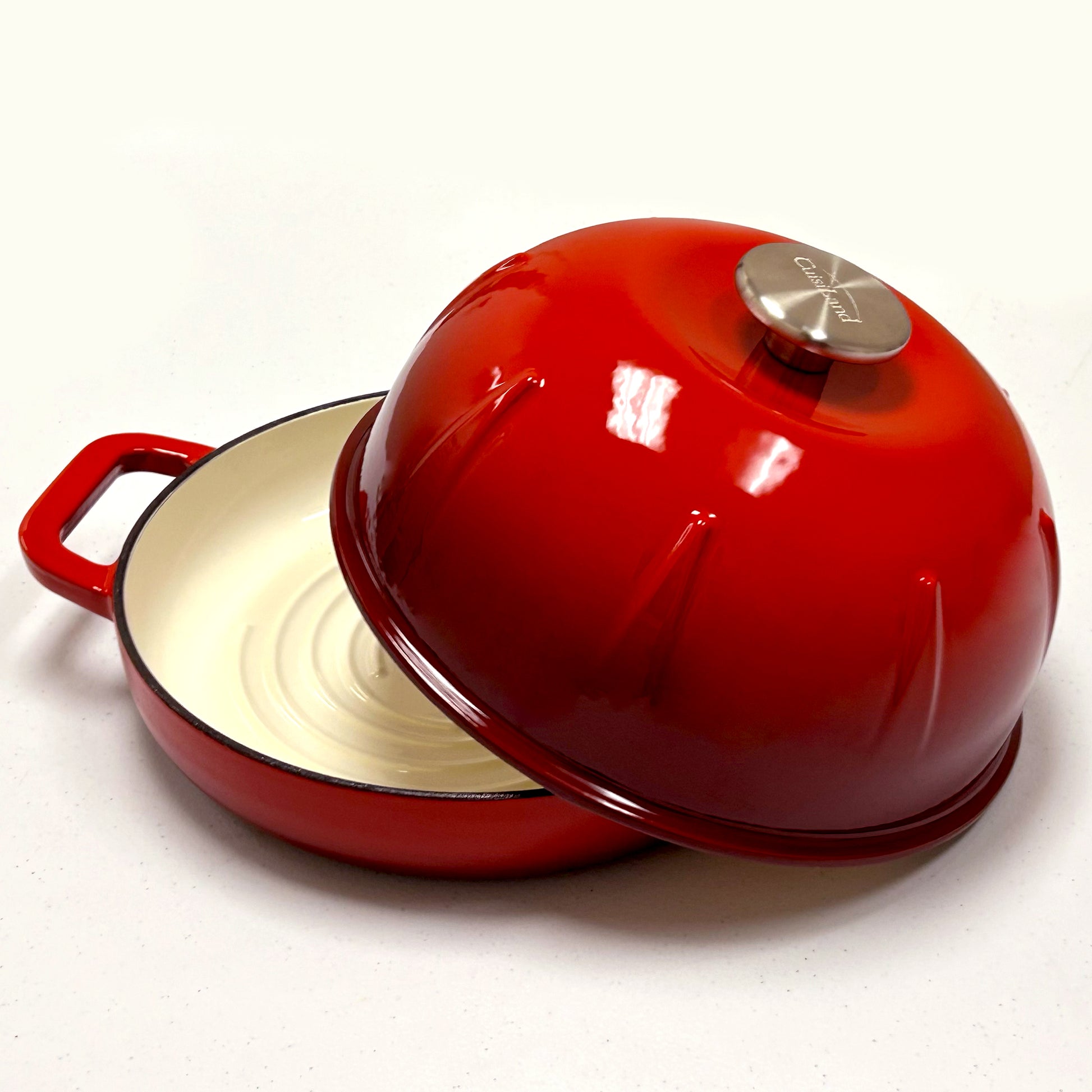 - PREMIUM QUALITY: Cuisiland Enameled Cast Iron Bread Oven is made of heavy-duty cast iron material, which is sturdy and durable for long-time use. The interior is coated with a smooth and durable vitreous enamel layer, which not only protects the iron but also makes it easy to clean and resistant to rust, corrosion, and high temperatures.