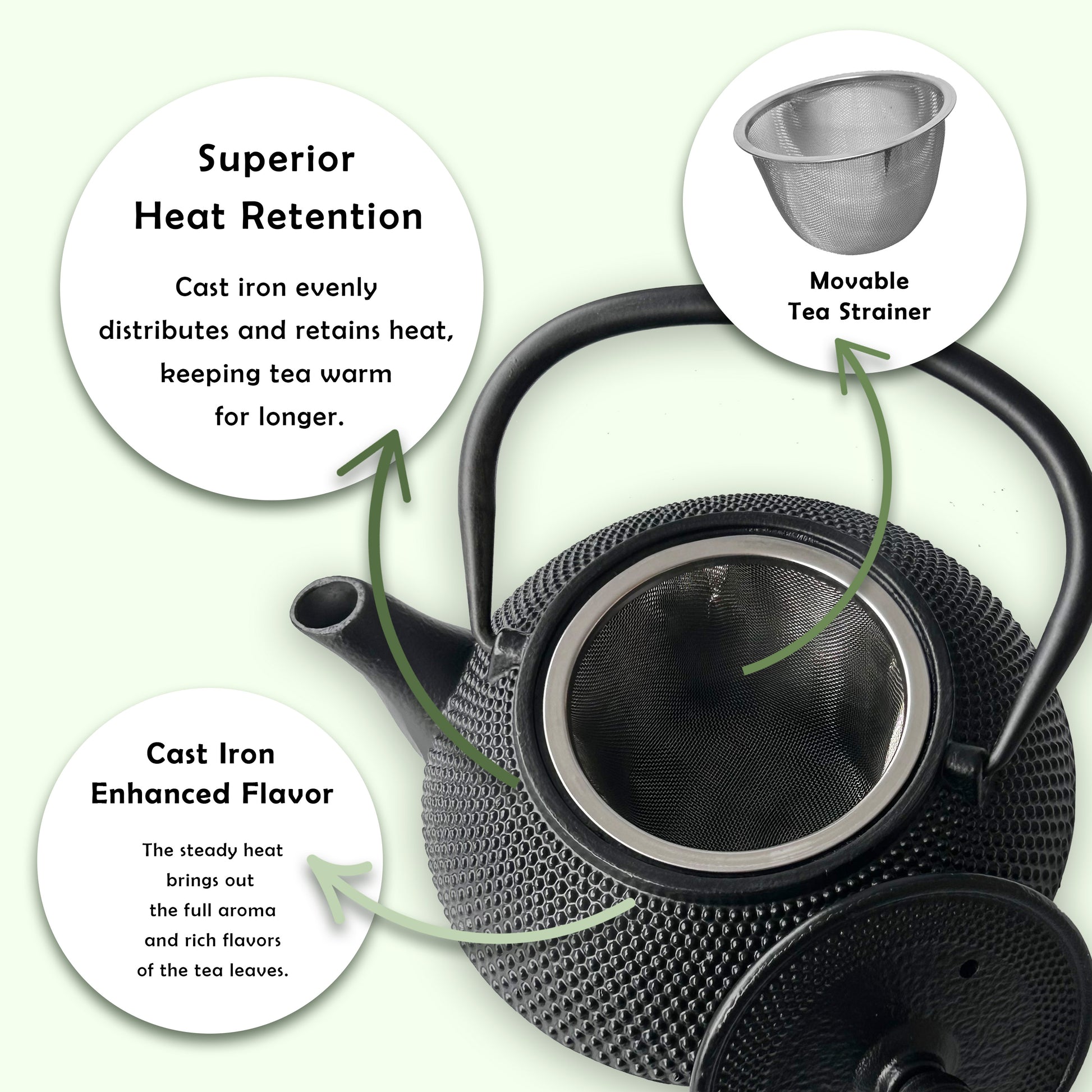 - EVEN HEAT DISTRIBUTION: The cast iron construction enables even heat distribution, maximizing the tea's flavor extraction and providing a delightful tea experience.
